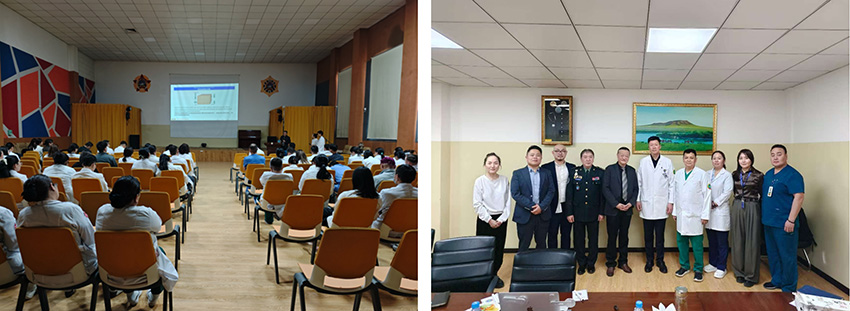 访问首日,利记国际团队拜访了蒙古国第一中心医院。作为拥有百年建院史的一家历史悠久的医院,该院创面管理治疗一直以来都是蒙古国的标杆。此次活动普外科主任甘巴特医生热情的接待了利记国际一行,付子俊教授为科室医生详尽介绍了再生医疗技术,并重点围绕再生医疗技术在急慢性创面管理中的创新应用进行了深入探讨。甘巴特主任高度认可利记国际在再生生命科学领域的创新成果及临床实践,并表示:“此次交流为再生生命技术在创面管理领域的进一步应用提供了重要启发。”同时,甘巴特主任表示,希望培养更多医生学习再生生命技术,并就未来开展联合研究表示了期待。